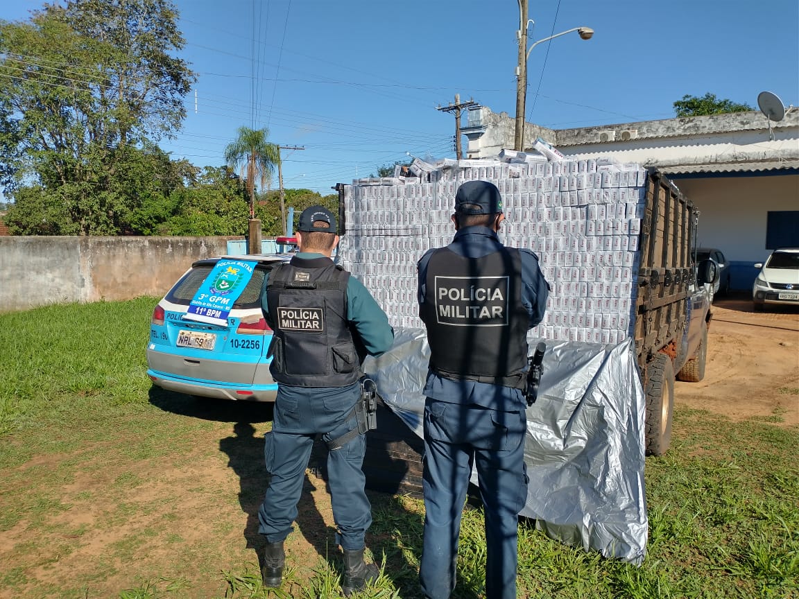 Por volta das 18h35min de sexta-feira (11), uma equipe de serviço da Polícia Militar em Bela Vista abordou um motociclista, após o mesmo adentrar em território brasileiro. Durante a busca veicular, os policiais localizaram 250 pacotes de cigarros de origem estrangeira, acondicionados em um reboque acoplado à referida motocicleta. Logo, os cigarros foram apreendidos e serão encaminhados à Receita Federal, em data oportuna. O condutor, de 34 anos, que não possuía CNH, foi autuado e, posteriormente, liberado, conforme Legislação vigente.